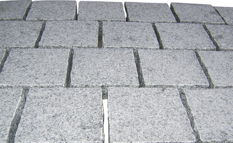 Cubes gris clair granit G603 dessus côtés flammés fond fendu naturel scié 10x10x10cm