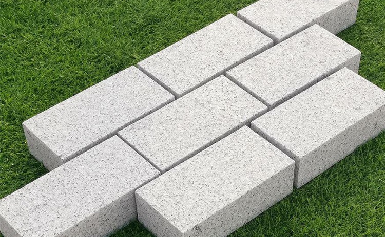 Pavage granit gris clair dessus flammé biseauté 3mm autres scié 20x10x5cm